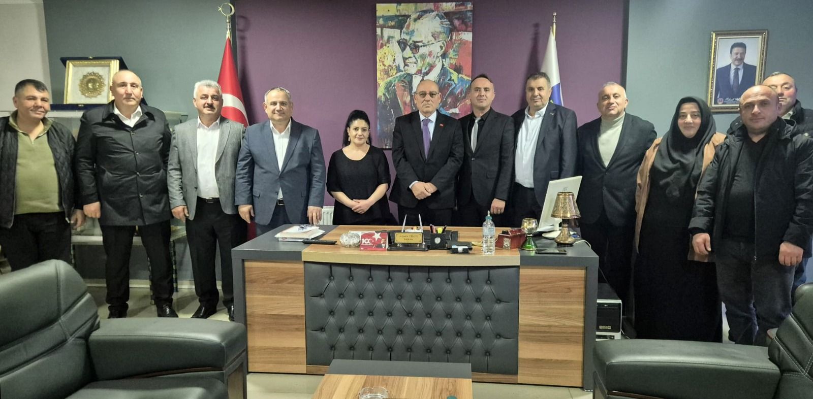 TESOB Başkanı Metin Kara, beraberinde TESOB Yönetim Kurulu Üyeleri ve esnaf odası başkanlarıyla birlikte Mümin Tirgil ve yönetim kuruluna yeni görev döneminde başarı dileklerini iletti.
