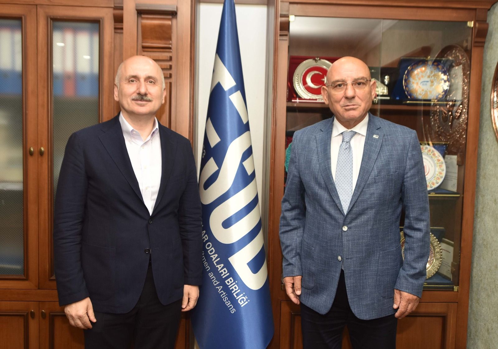 22.08.2025, TRABZON, TESOB- TBMM Bayındırlık, İmar, Ulaştırma ve Turizm Komisyonu Başkanı ve AK Parti Trabzon Milletvekili Adil Karaismailoğlu, AK Parti İl Başkanı Sezgin Mumcu, Ortahisar İlçe Başkanı Seyit Hisoğlu ve beraberindeki parti yetkilileri, Trabzon Esnaf ve Sanatkârlar Odaları Birliği'ni (TESOB) ziyaret etti.