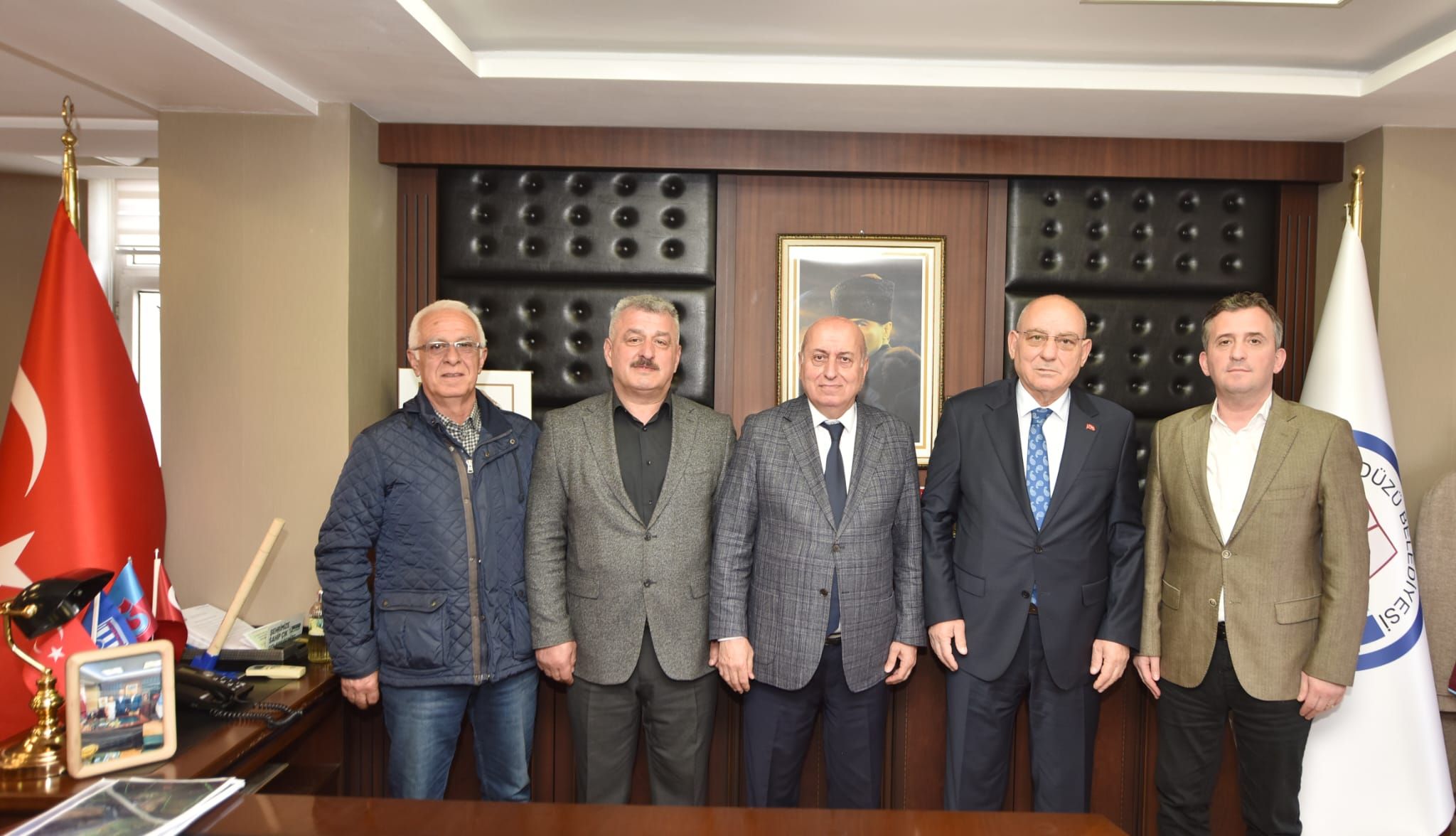30.03.2026, TRABZON, TESOB- Trabzon Esnaf ve Sanatkarlar Odaları Birliği (TESOB) Başkanı Metin Kara, Beşikdüzü Belediye Başkanı Burhan Cahit Erdem'i ziyaret etti.